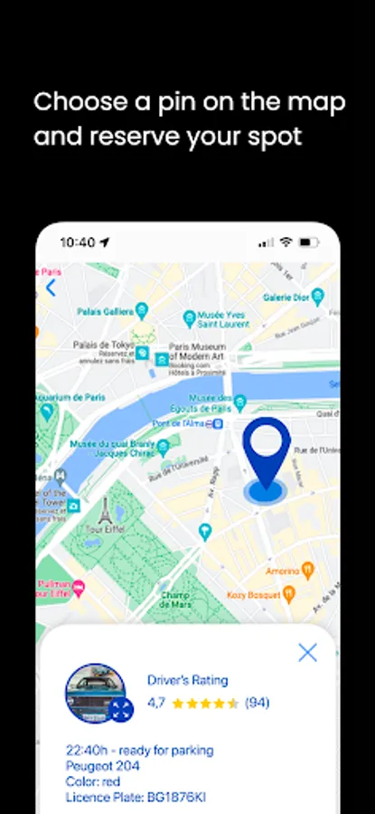 MyParkeep is a community service application for motorists/motorcyclists. More precisely, it is an intermediation service, whose role is to connect users of parking spaces, with the aim of facilitating their parking upon arrival at their destination, at a lower cost and in an environmentally responsible manner. Our main focus is on the roads of large cities, but the service can be extended to all locations where parking is difficult, and works for any type of vehicle. The main and fundamental objective is to save time. Thanks to our algorithm, we cross-reference the arrival and departure information of our users wherever they are, so that they can exchange at the right time. With our solution, we completely eliminate the time it takes to find a place,