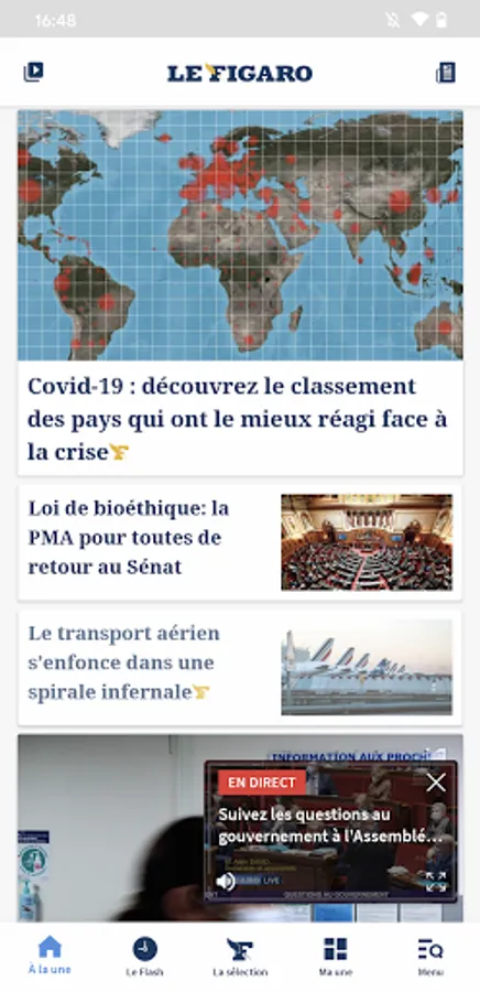Vous pouvez maintenant regarder ou écouter un direct vidéo du Figaro Live tout en navigant sur l’application.