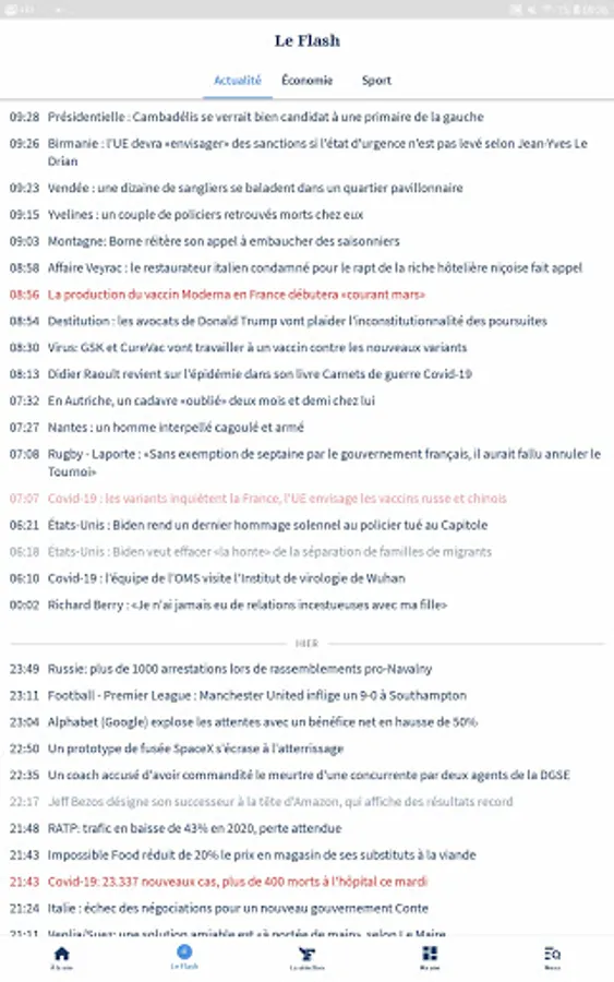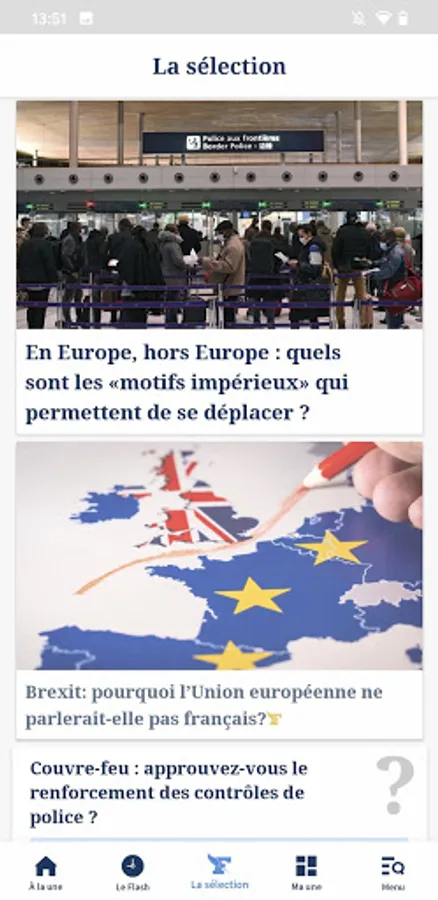 Accédez à vos rubriques principales (À la une, Le Flash, La sélection, Ma une, Menu) depuis la nouvelle barre de navigation en bas de l’écran.