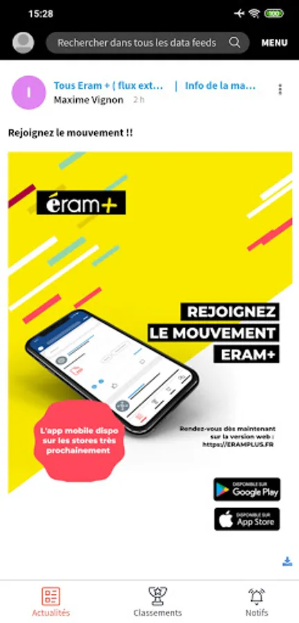 Thanks to the Eram + application, follow company news and be the first informed of all the brand's news!