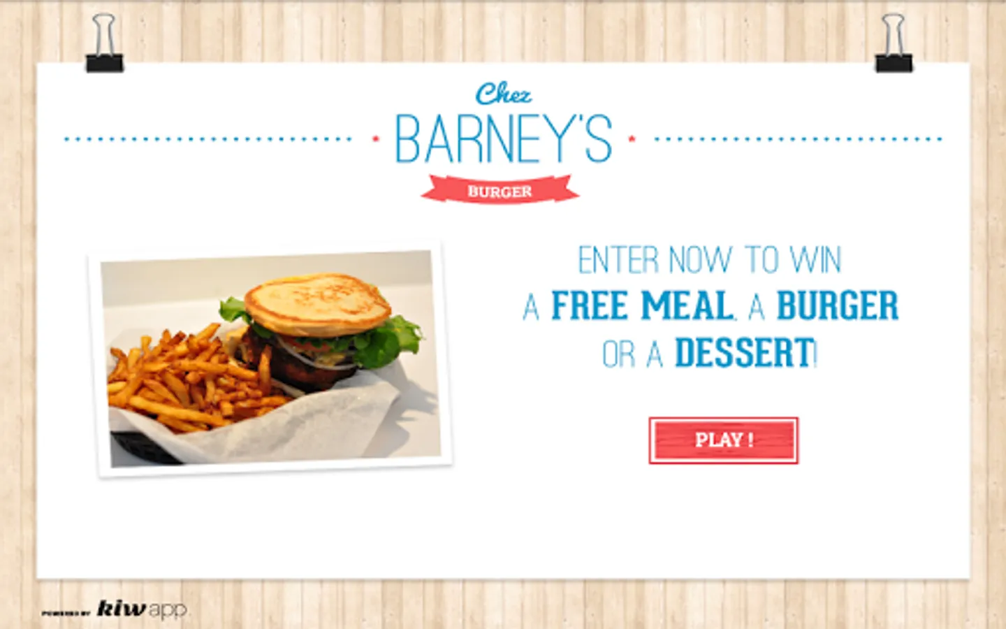 Test our demo services “Chez Barney’s Burger” by choosing a name, entering the code “demo” and imagine what you could offer to your customers.