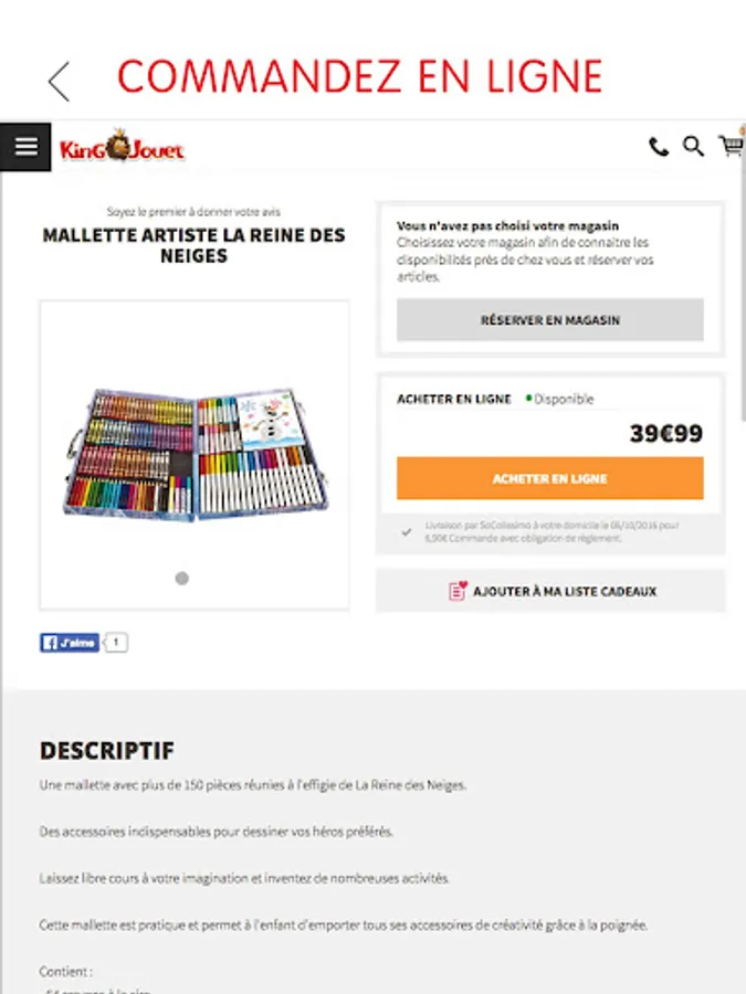 REALIZE YOUR PURCHASES comfort of your sofa and enjoy exclusive offers of King Jouet, its prices among the best in the market and its promotional offers.