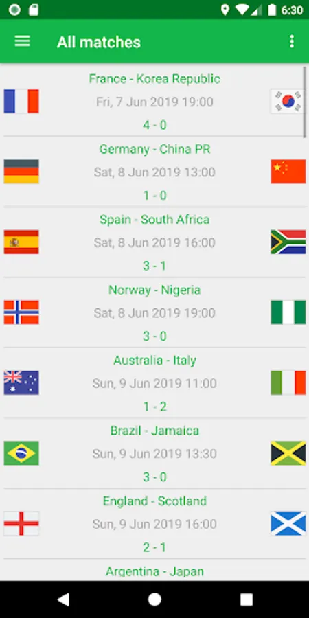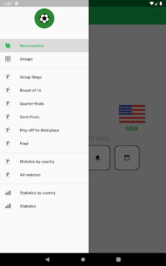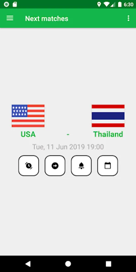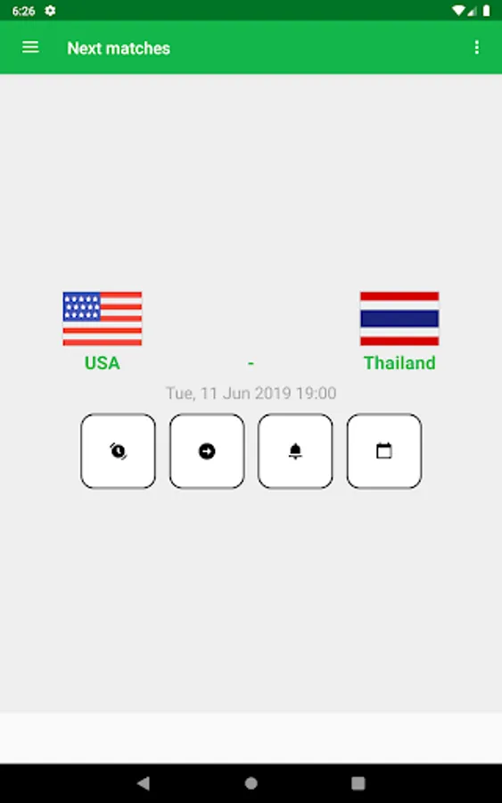 - Display of upcoming matches with the option to create an alarm or an event in your calendar