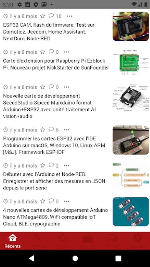 With the mobile application, you will have everything at hand to realize your connected objects projects. Articles, tests, projects, tutorials and direct access to the forum of mutual aid.