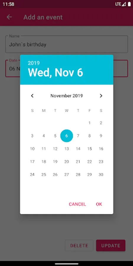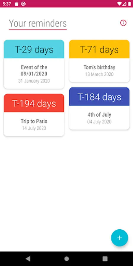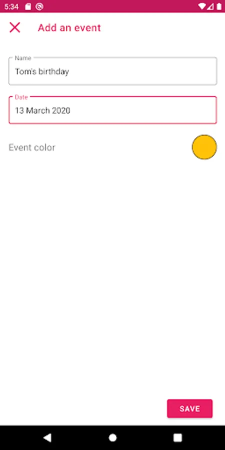 Add these events to the application and quickly view the number of days remaining.