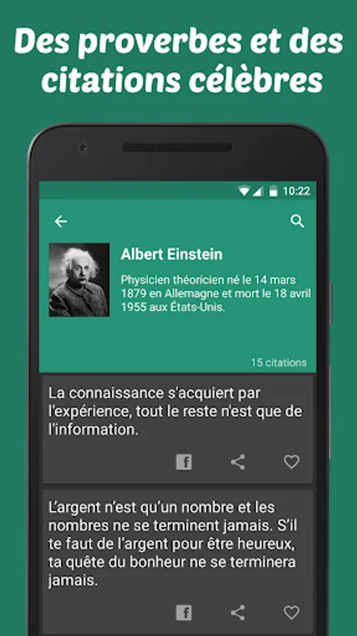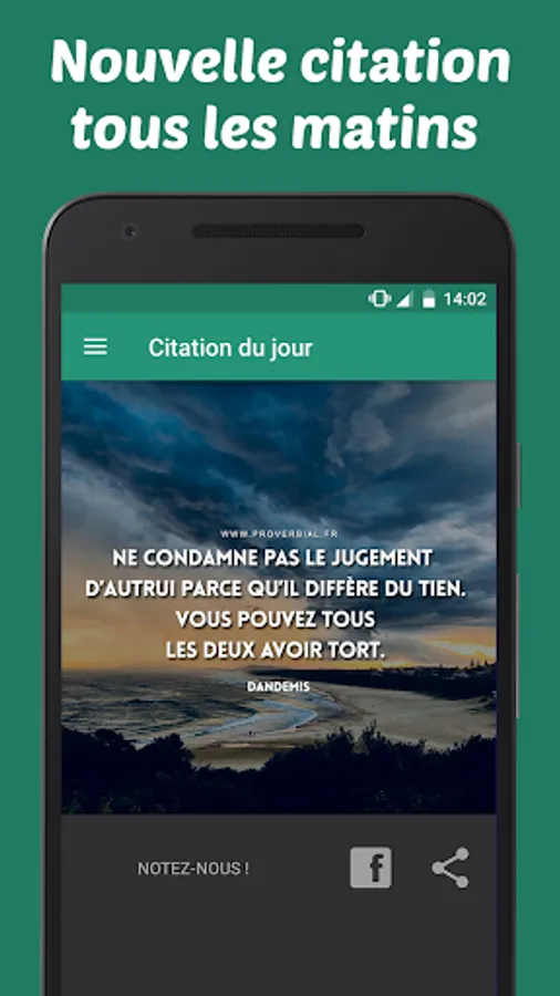 This application is intended for people who love quotes and proverbs of all kinds! Whatever the situation or the emotion you are looking for, you will find the perfect quote that will suit you.
