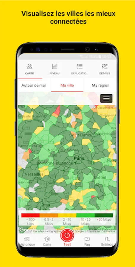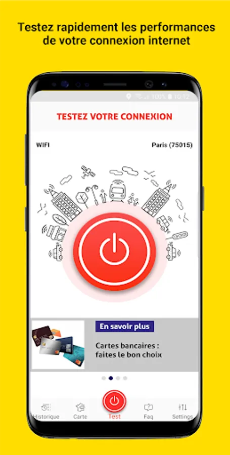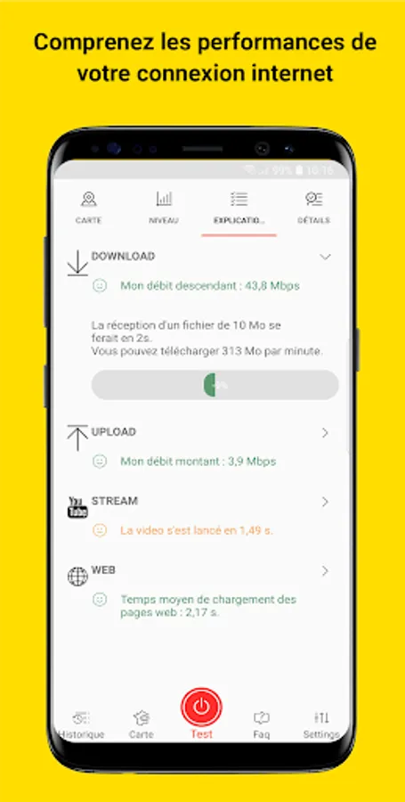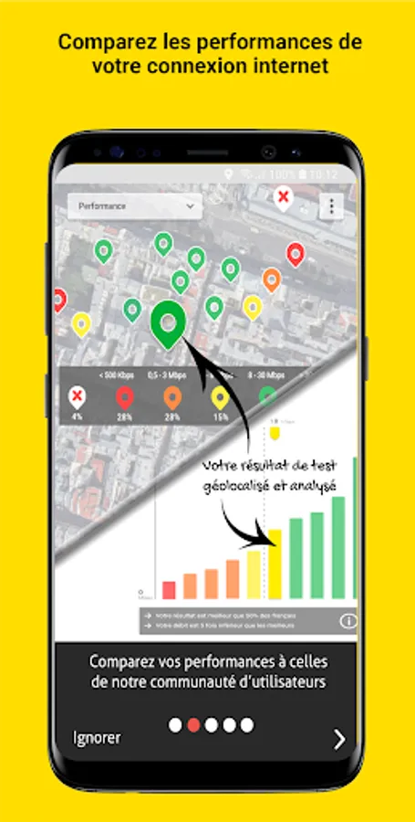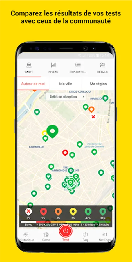DebiTest 60, available from 60 million consumers, is a collaborative application that measures the speed and quality of your carrier's Wi-Fi and 2G / 3G / 4G connections. DébiTest 60 assesses the quality of connections on mobile devices (phones, tablets ...) and restores the performance of your data communications in the form of information, coverage maps and graphics by comparing them with those obtained by our community of users .