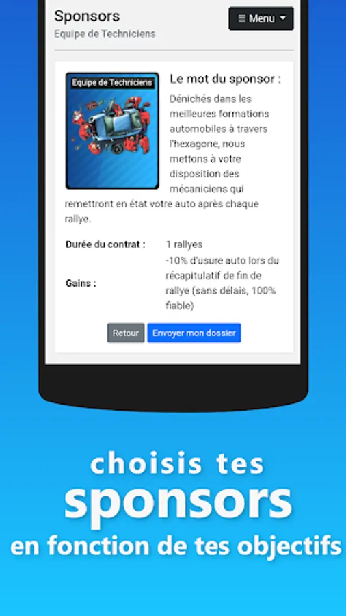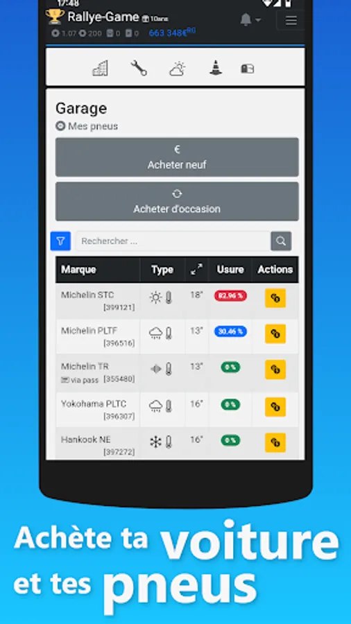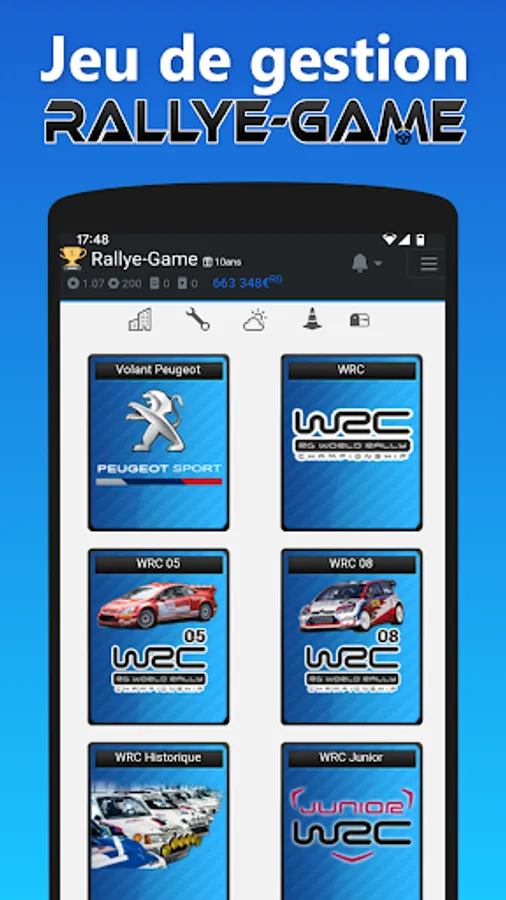 Cars, tires, sponsors, championships, challenges, teams, ... everything is there to create an infallible strategy and become the Sébastien of rallies.