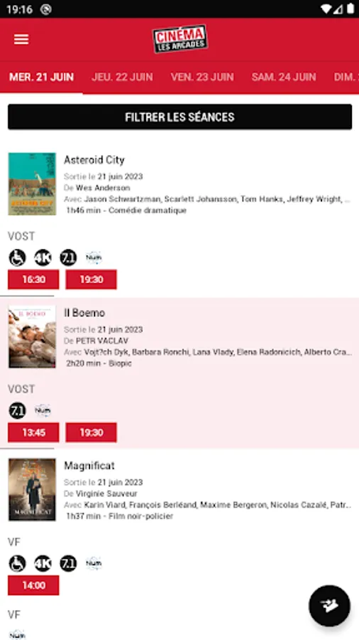 Find all the information about your cinema on your smartphone at any time. You can consult the schedules of the sessions and reserve your place in a few clicks!