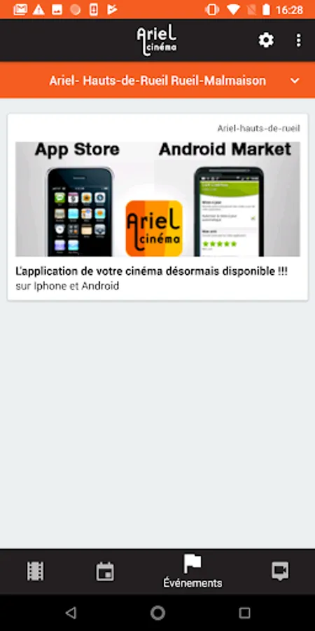 Retrouvez à chaque instant toute l’info de votre cinéma Ariel Cinémas sur votre téléphone ! Les films à l’affiche, les horaires des séances, les fiches films et les événements et infos pratiques de votre cinéma !