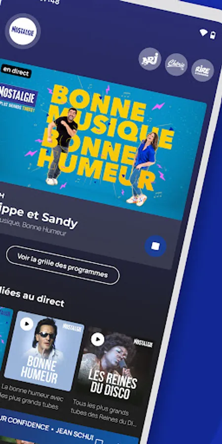 The NRJ group (NRJ, Nostalgie, Chérie FM, Rire & Chansons) now offers the full range of its 4 radio universes in the Nostalgie App!