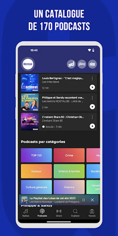 You now benefit from the entire NRJ Group podcast catalog in a single App, with more than 150 podcast programs including many original and exclusive creations.