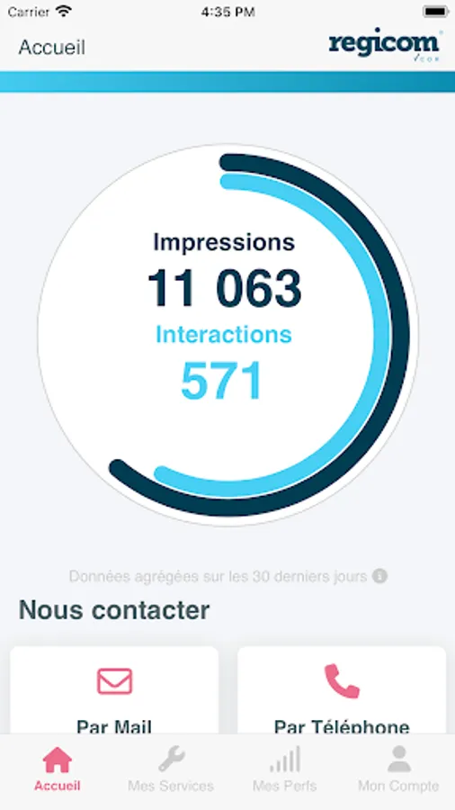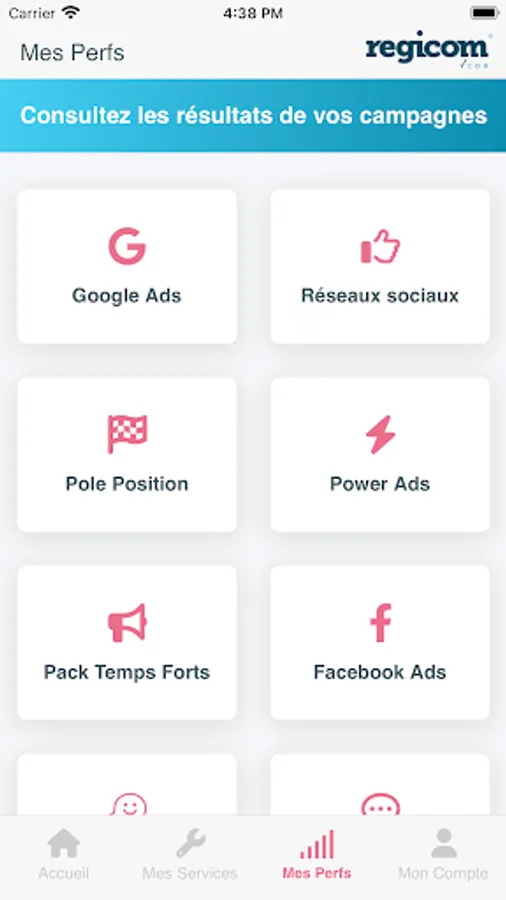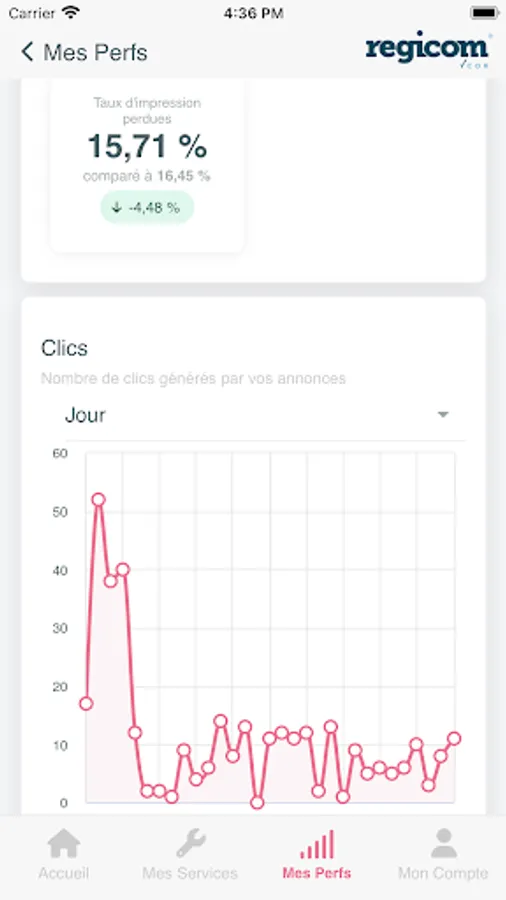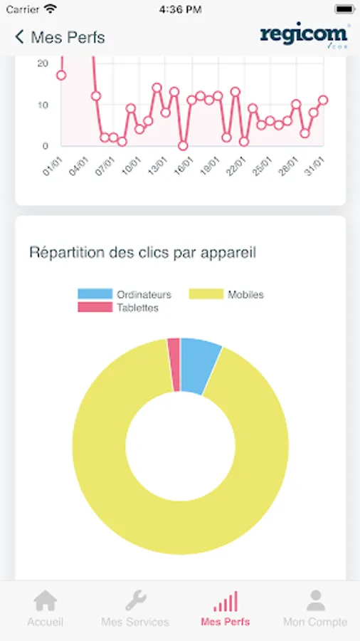 Check the performance of your Regicom products and campaigns, and measure your online visibility in real time. Your Regicom application allows you to access the statistics of your advertising campaigns, your social networks or even your Regicom website.