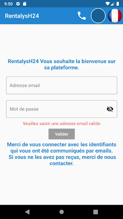 Once you see that your account is created, you will receive your credentials to log in via the Rentalys H24 application.