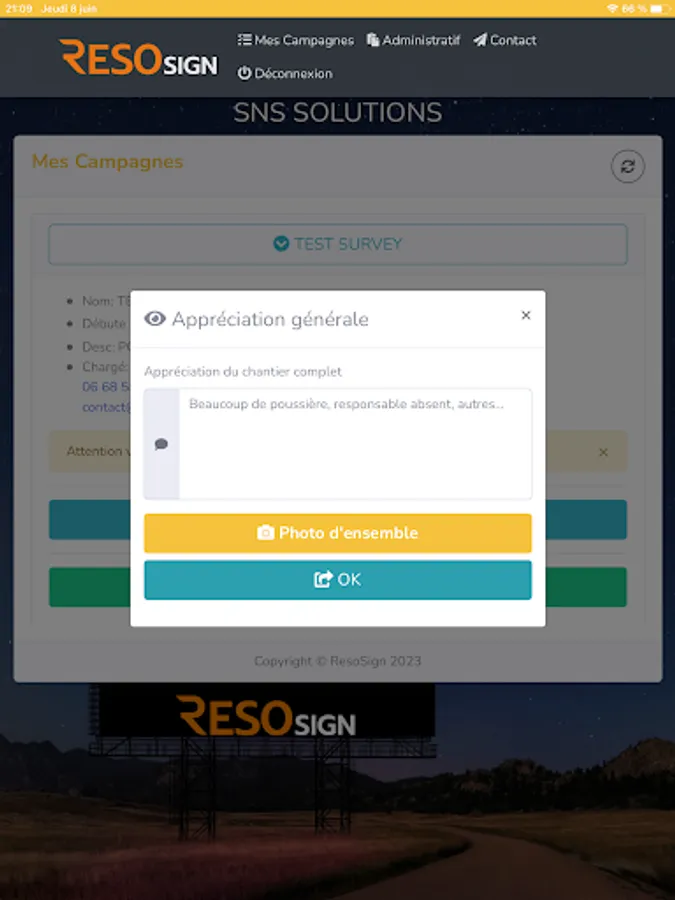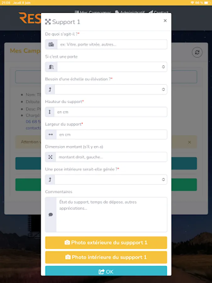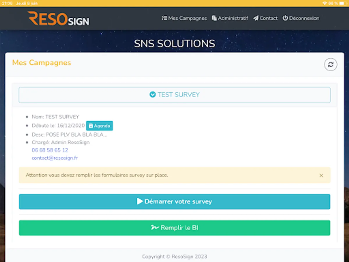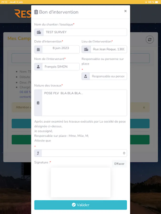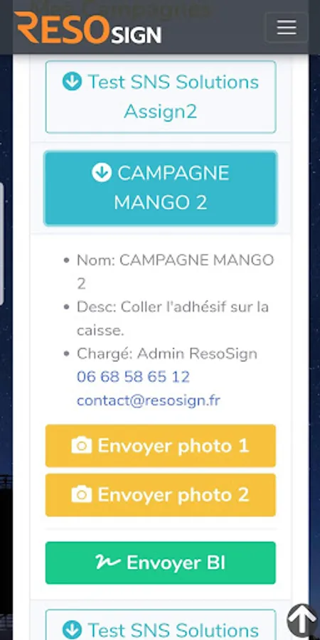 In particular, it allows you to find the list of campaigns to which you are assigned, to transmit your photos of the result directly to the network and to clients at the end of the intervention, as well as to transmit intervention vouchers in the same way.