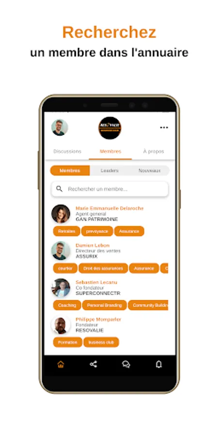 Easily search for a member of the network by surname, first name, company, skill, location... The essentials to facilitate your networking!