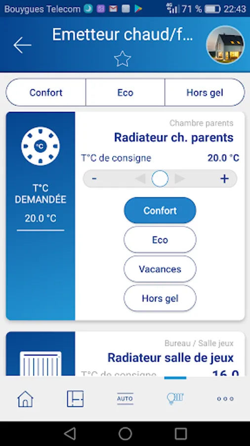 Comfort: In local or remote, you can constantly control the temperature of each room, turn on and off the electrical devices and lighting at your convenience.