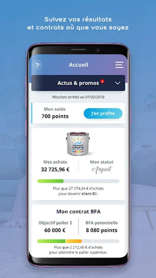 Thanks to the application you can follow the evolution of your loyalty at any moment and in only a few minutes. On smartphone and tablet, sign in and enjoy the many features: