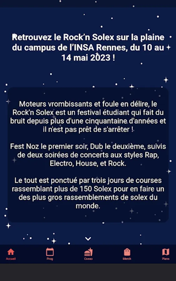 Install the Rock'n Solex application to accompany you throughout the festival.
