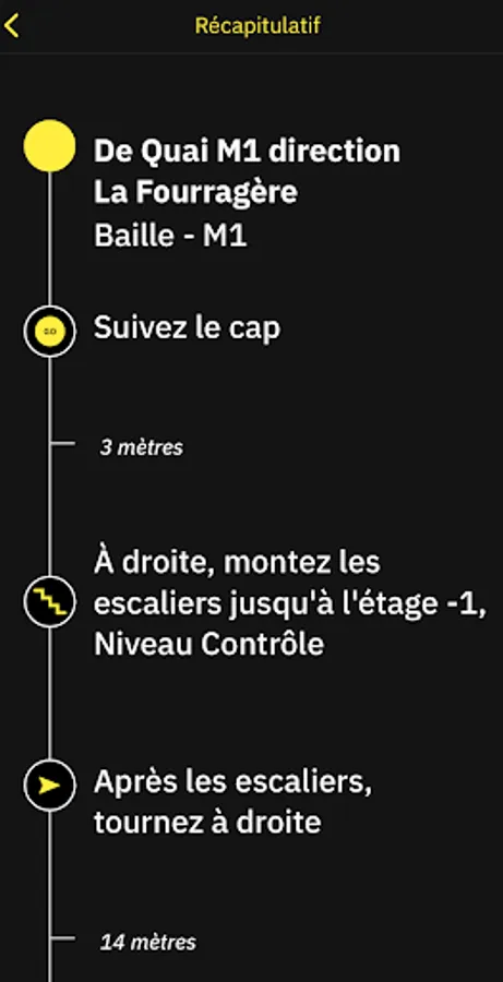 Guidance in the metro is made possible thanks to a network of Bluetooth beacons which allow localization with an accuracy of more or less 2 meters. To do this, authorize the use of Bluetooth and your position by the application