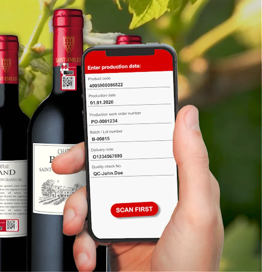 Châteaux and operators can use this app to add production data to tesa scribos security labels, e.g. Wine name, production date, batch number etc.