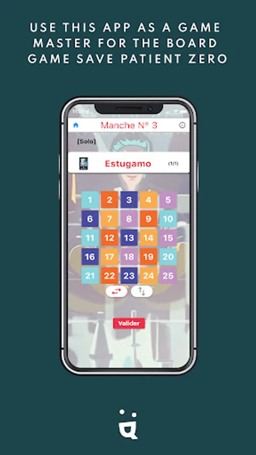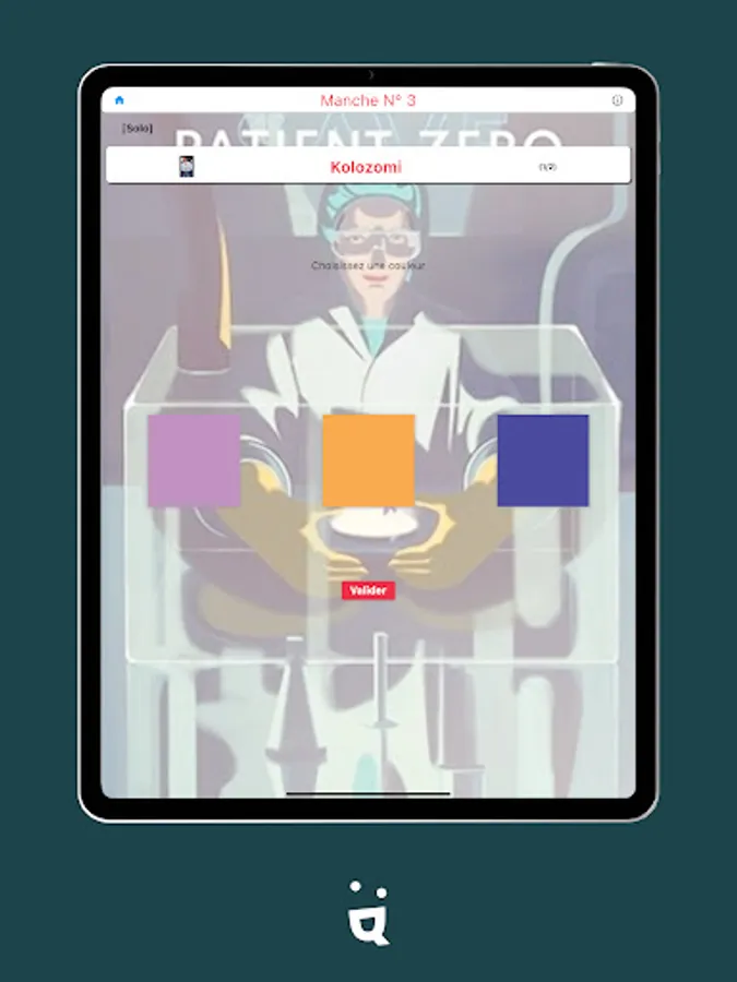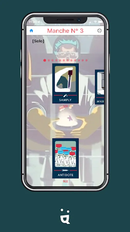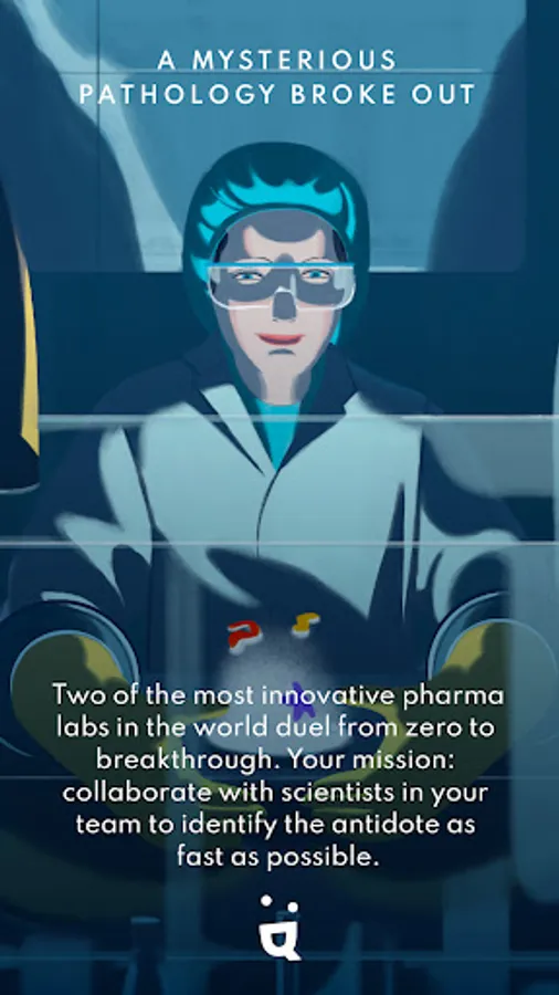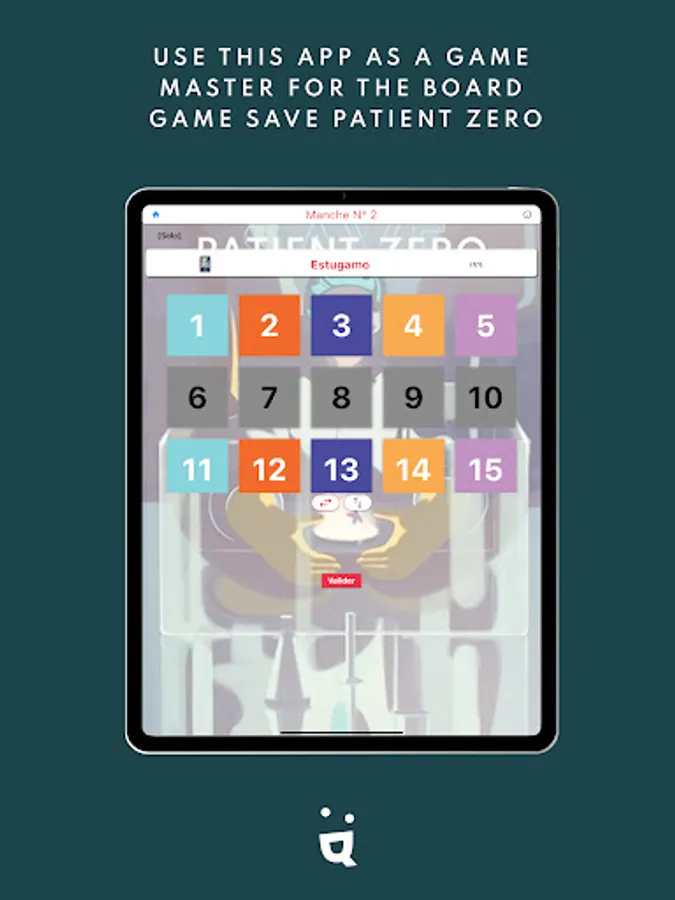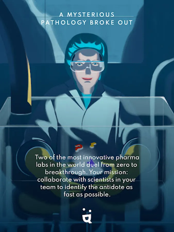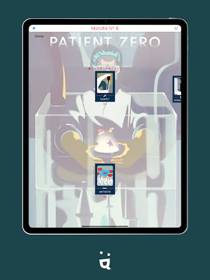 The app is a companion for the board game Save Patient Zero, in which two labs compete to identify an antidote made. Out of 25 possible molecules, find the three that make up the cure. The general idea of the game is to use lab tools in the most efficient order. Whoever finds the antidote first wins the game.