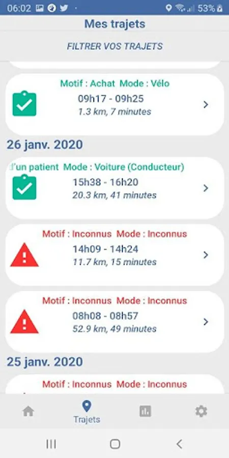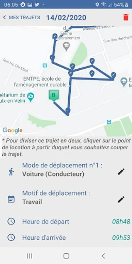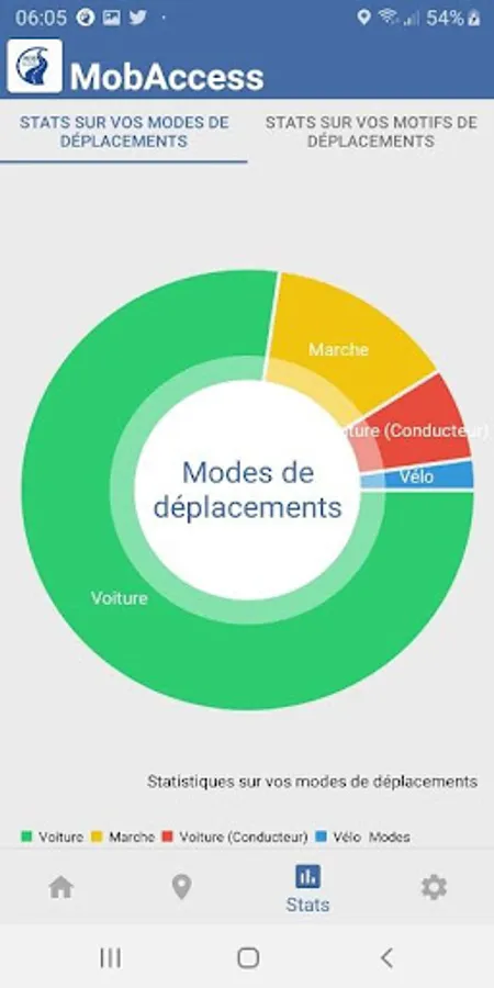 As part of the MobiCampus-UdL research project, LAET, in collaboration with the University of Lyon and the Métropole de Lyon, is experimenting with a GPS track collection application called MobAcess. The purpose of the application is to collect mobility data from a panel of volunteer testers recruited following the WEB survey. It is through the data collected to better understand your mobility practices. The application offers the testers the possibility of spatially visualizing all the traces collected, of annotating the journeys made (mode and reason for travel) and of restoring information related to the times and distances traveled.