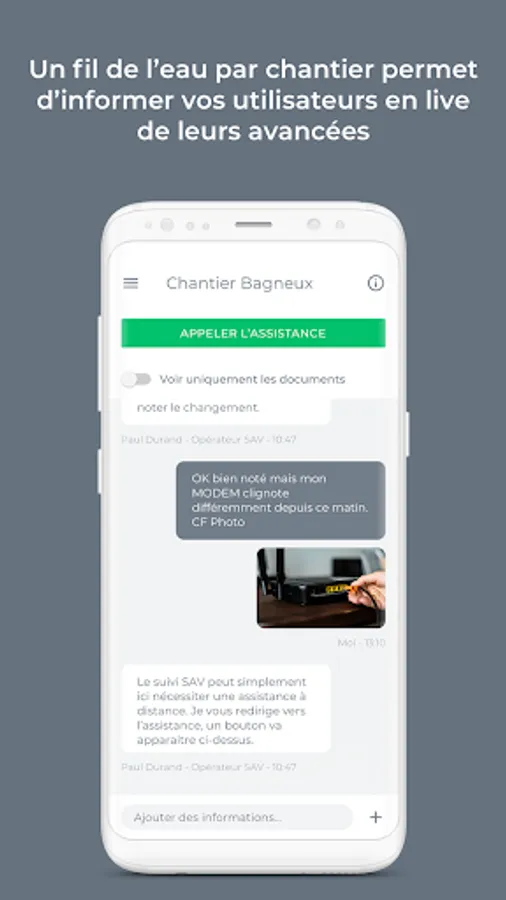 As for the technical teams, We & You gives them the opportunity to Communicate on the information related to the company, to declare all the interventions affecting agencies or companies in the territory: infrastructures, networks, servers, applications, etc ..., to follow all requests for assistance and react quickly in case of reporting incidents, to assist users with mobile cameras better help them in the event of breakdowns, to give access to the technicians involved on the sites to complete the wires water interventions in agencies, moderate innovation ideas before sharing them to all users, share documents easily, create QRCodes on computer components (server, workstations, meeting room , switch, routers, etc.) to give directly the right documentation (photos, videos, operating modes, etc.)