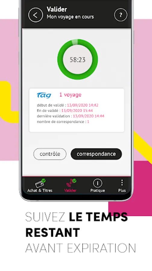 A sound confirms the validation and a display of information concerning the current movement appears on the screen. In the event of an inspection, simply present the screen of the smartphone to the driver or the controller.