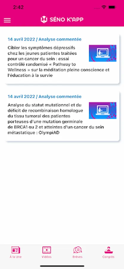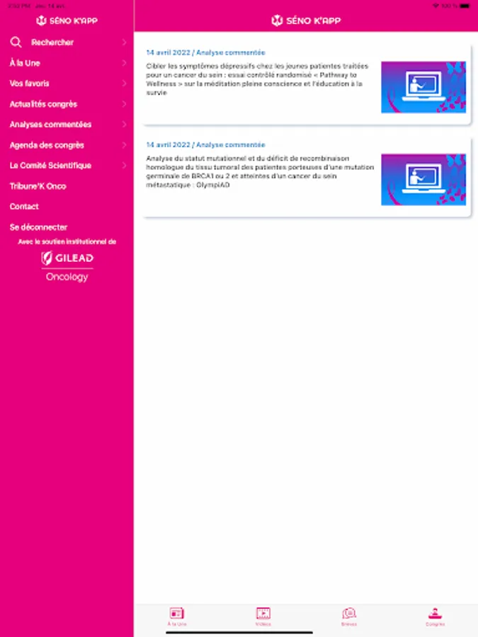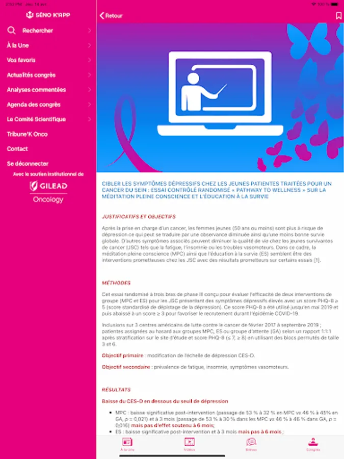 The SÉNO K'APP application, published by Tribune'K Onco, offers the main news in breast cancer