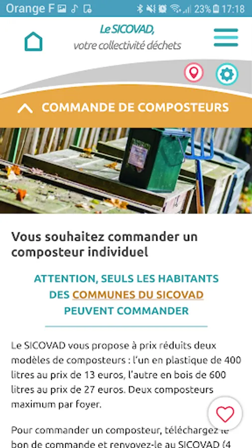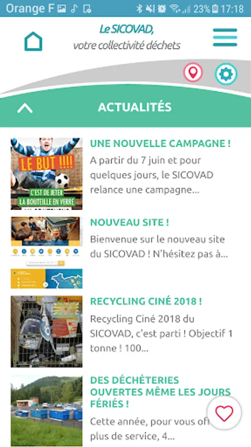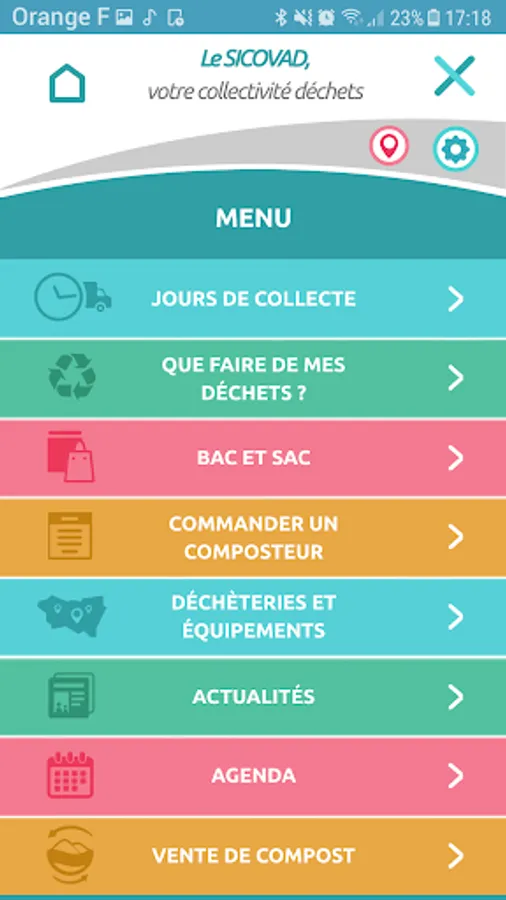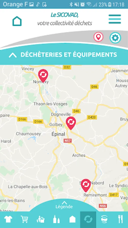 The SICOVAD is an application that allows you to better manage your waste in the Vosges with: alerts to know the collection time, interactive map of equipment (glass containers, textile containers, shops selling bulk restaurants offering doggys bags, waste disposal centers with itineraries), a calendar of "sustainable development" events and of course an online sorting guide.