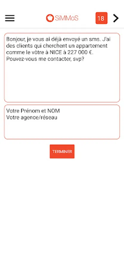 Ensuite, en seulement quelques clics, vous pouvez envoyer un sms à l'annonceur. Vous êtes presque sûr d'être le premier à contacter l'annonceur. Vous pouvez choisir entre un des sms 'type' très efficace ou un de vos sms personnalisés préparés en avance.
