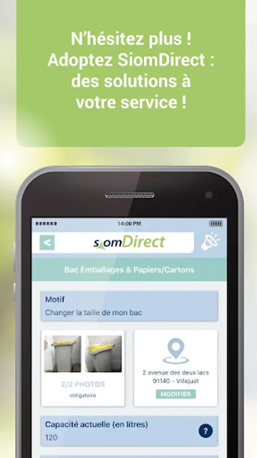 Thanks to this application you will be able, in a few clicks, to order a bin, to report a problem that occurred during the collection, to indicate a point of voluntary contribution too full, to ask for communication supports, etc.