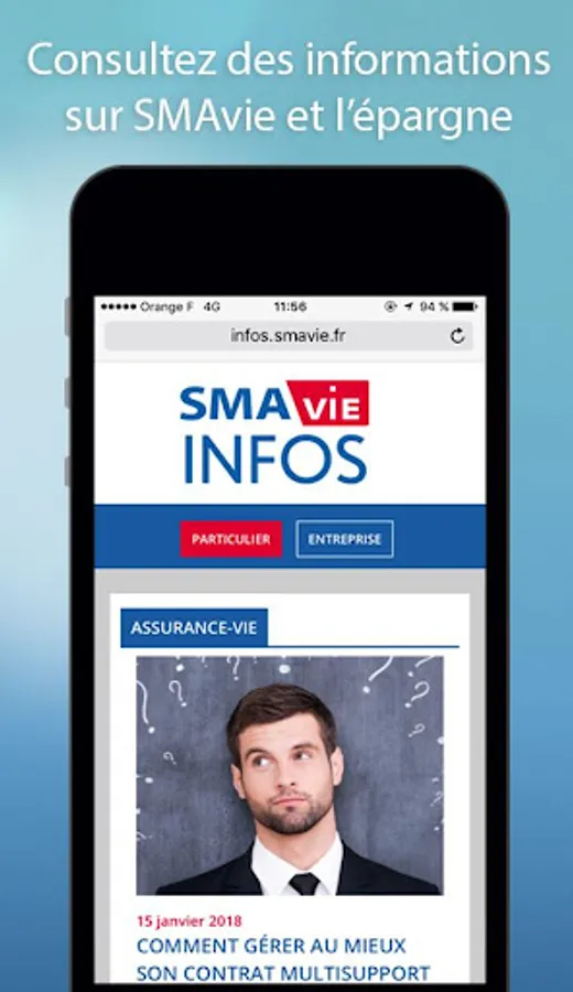 With the application SMAVIE Info, easily access your savings contracts and find the essential information for the management of your assets and your retirement savings.