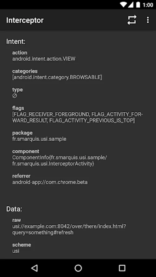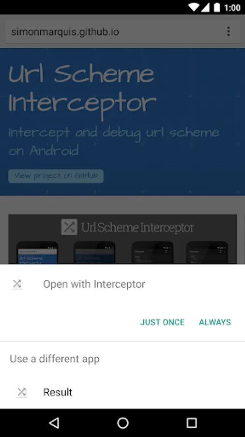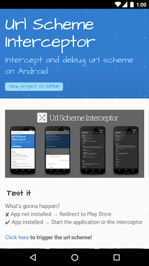 https://github.com/SimonMarquis/Android-UrlSchemeInterceptor