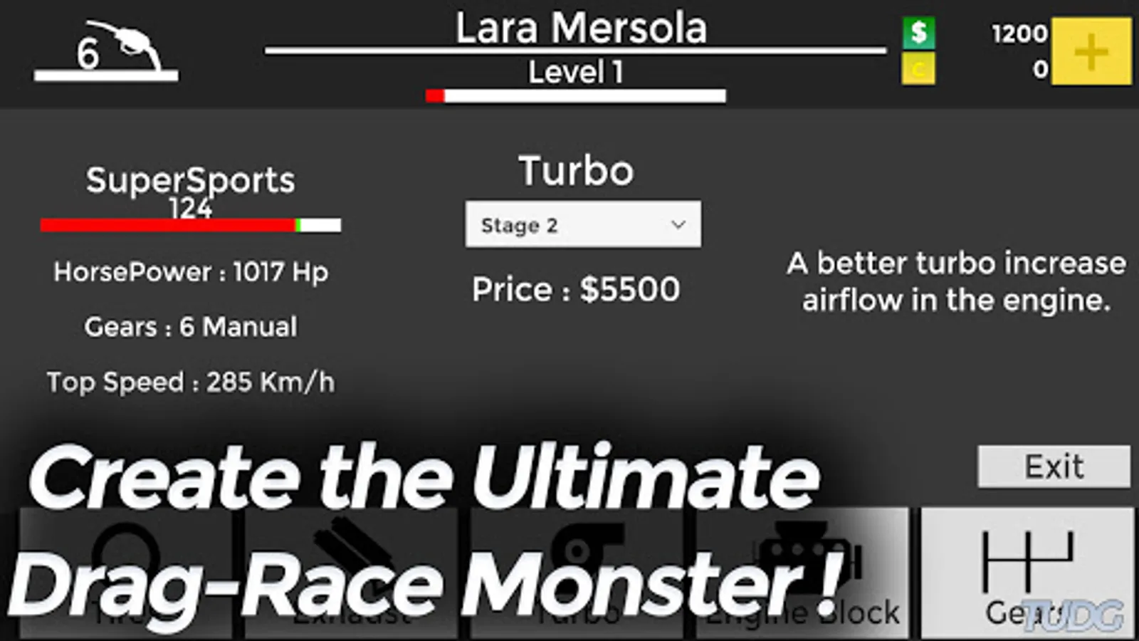 Change your Turbo, Exhaust, Gears, Tires and create the Ultimate Drag-Race MONSTER !