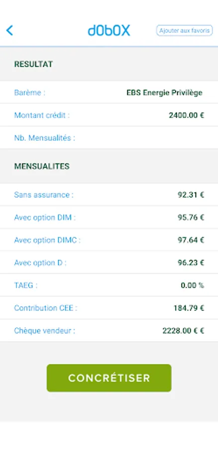 The Dobox Mobile Energie allows an approach to financing by the monthly reimbursement planned by the customer to carry out his future work.