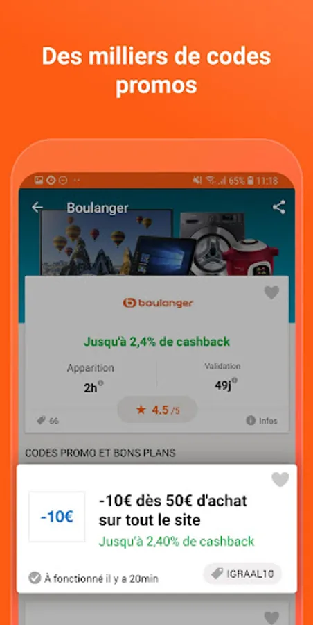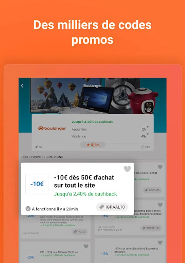 With the iGraal cashback, you are reimbursed up to -50% on your purchases at more than 1,700 merchants such as: Cdiscount, Asos, Aliexpress, Hotels.com, Nike, Booking, Sarenza ... you also benefit from good deals and exclusive promo codes! Registration is always free and in addition we offer you € 3 as a reward!