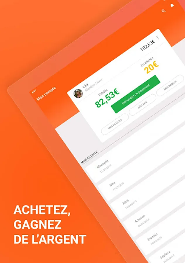 Find your merchant, activate cashback, and make your purchase directly in the iGraal app. Your cashback is then credited to your iGraal account, and from € 20 you can request a bank transfer or Paypal.