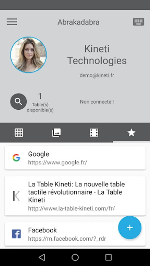 Abrakadabra is an application dedicated to the sharing of documents between mobile devices of a home to a Kineti table.