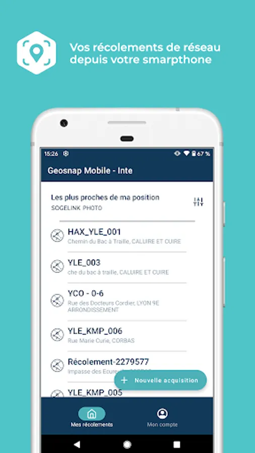 With Geosnap Mobile, make your acquisitions via your smartphone and get automatic feedback in a few minutes on their proper use for your inventory.