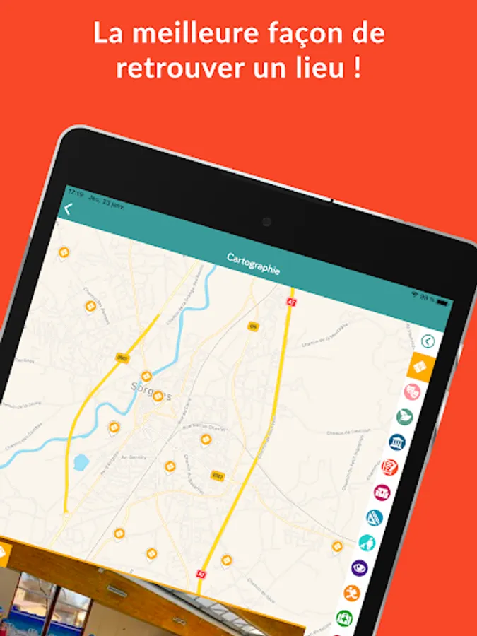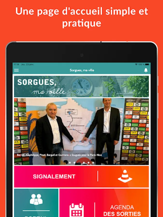With the application "Sorgues, my city", follow the news of Sorgues, consult the calendar of trips or access many practical information (times, phone numbers, school menus, procedures, plan ...) directly from your mobile to facilitate your steps.
