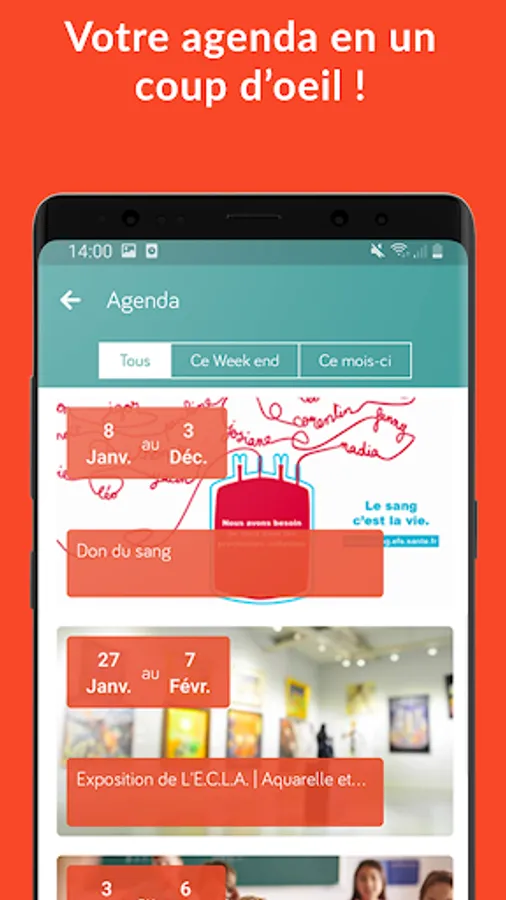 Thanks to the "Reporting" tab, you can transmit a malfunction or an anomaly (roads, cleanliness, public lighting ...) accompanied by a photo so that the concerned services intervene.