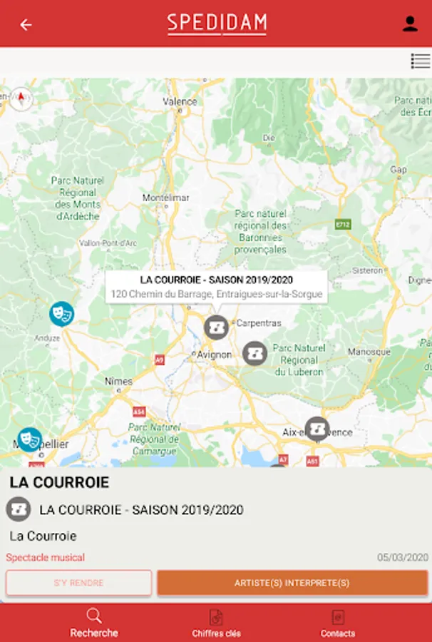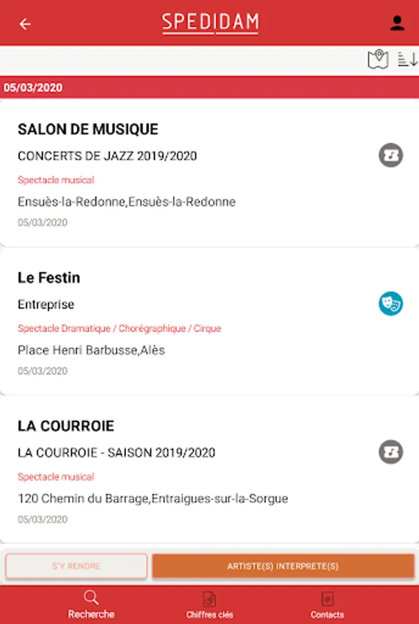 Since the information relating to the dates and places of performance of shows as well as to the performers concerned by the aforementioned shows presented in this application has been communicated to us by the organizing structures, SPEDIDAM declines all responsibility for the accuracy, completeness and the accuracy of this information.