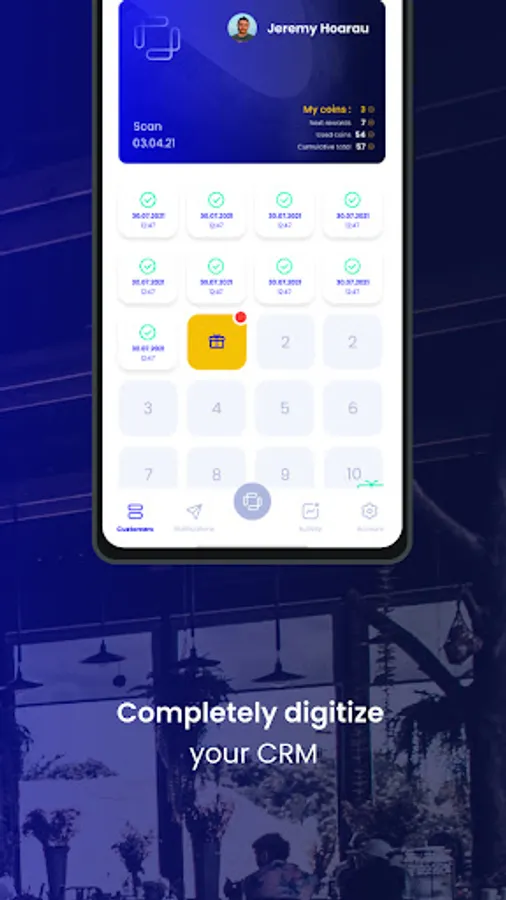 Create your business profile in a few clicks then simply scan your customers at each checkout to award them loyalty coins. The same as with buffers on a physical card. Dematerialize your loyalty program easily and quickly with Fidelatoo, no more stock and printer budget!