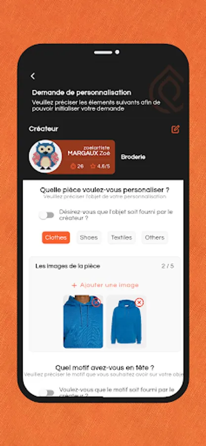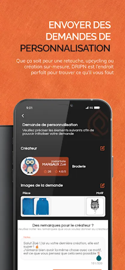 DRIP'N is the first French platform designed specifically for fabric customization requests (embroidery, sewing, fabric painting, etc.).