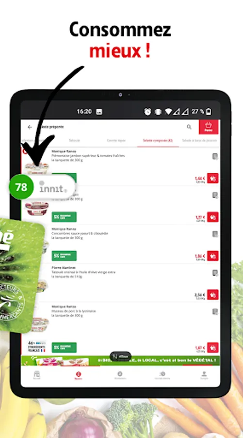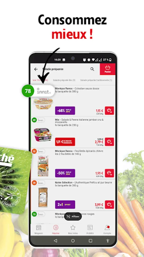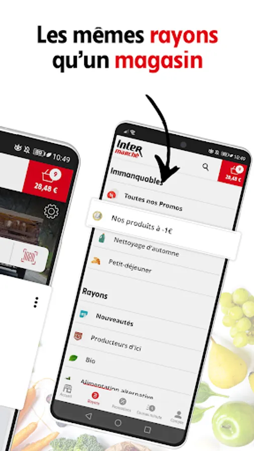 - Take advantage of all the promotions on your mobile and save, by consulting the prospectus of your Intermarché store and directly adding the promotions to your basket.