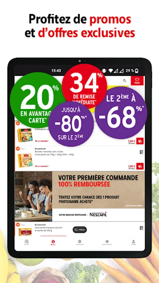 With the Intermarché app, have your shopping delivered to your home, pick up your order at the Drive or shop directly!