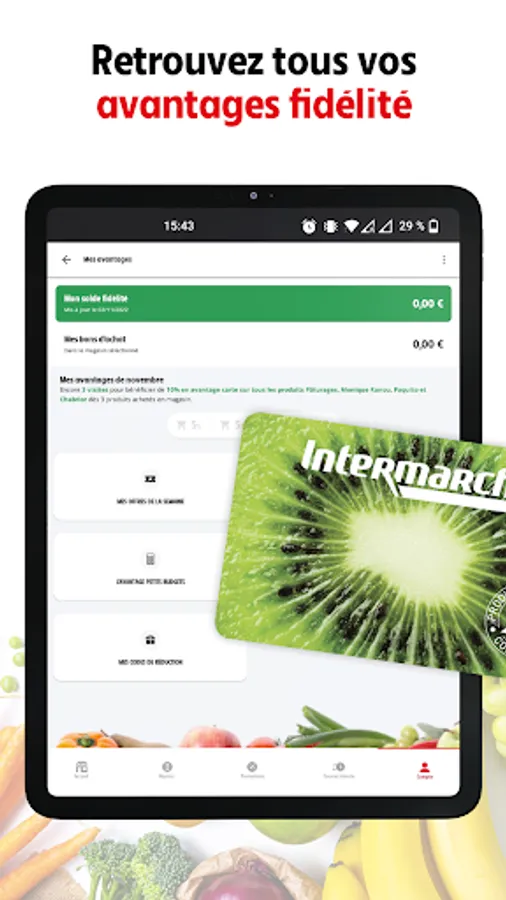 - Your loyalty card is always with you: register your Intermarché loyalty card to accumulate euros and enjoy card benefits at every checkout.