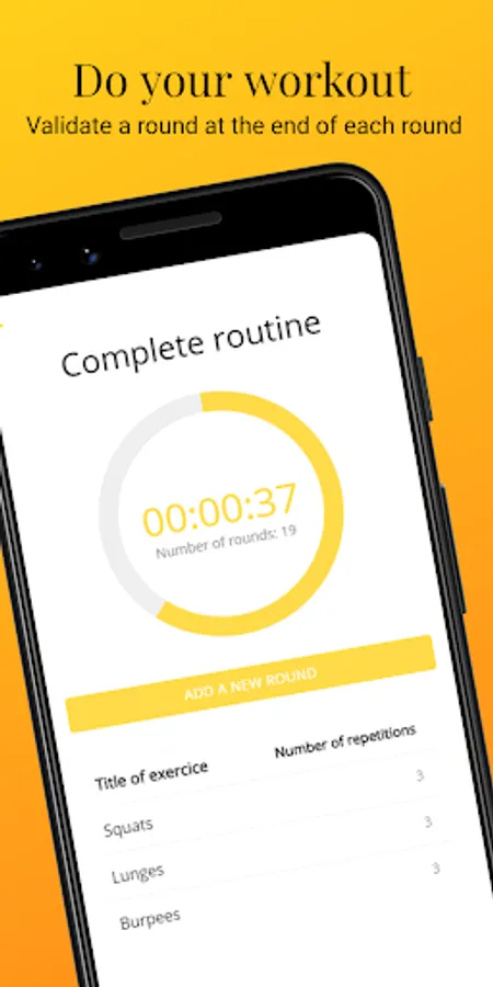 Do you want to record your sessions and keep an eye on your performance? You can create as much workout as you want and add as much exercise to it as you want. You just have to launch your AMRAP and each time you do a round, validate it by pressing the button provided.